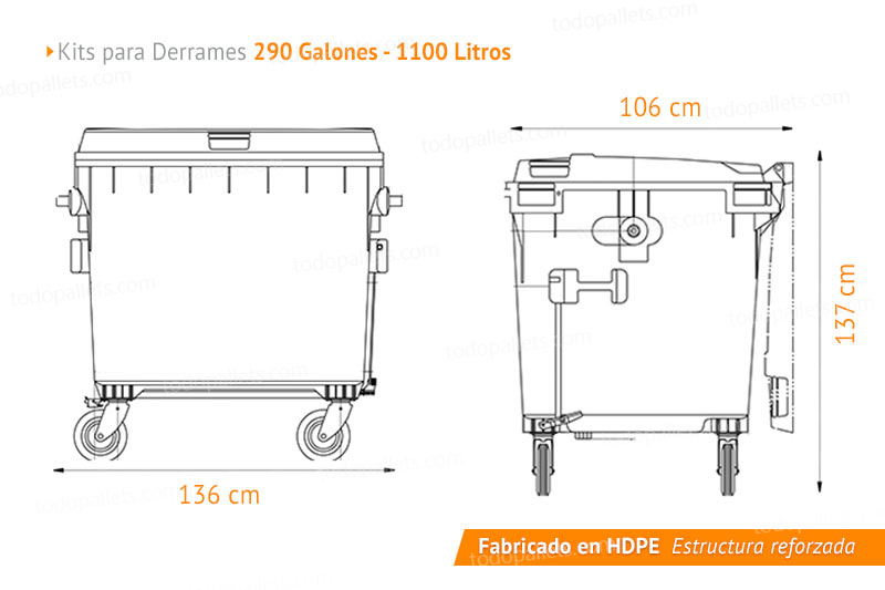 Kit Antiderrames Extra Large 290 Galones Contenedor de Plástico – Sólo Aceite