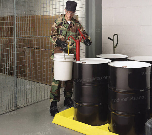 - Plataforma para contención de derrames para 2 tambos, resistente a óxido, hidrocarburos y aceites.