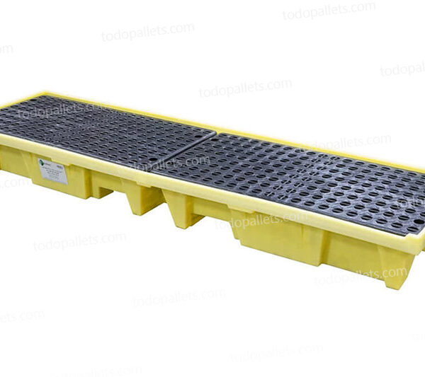Plataforma Antiderrames para 2 Tambos Industriales resistente a hidrocarburos, aceites y a la corrosión. Fabricada con Polietileno de alta calidad. Aprobada por Normas EPA, SPCC y NPDES. Incluye rejilla removible HDPE para facilitar la limpieza y acceso al interior de la plataforma. Tiene entrada para montacargas y diseño ergonómico. Accesorio complementario Rampa PolyRamp Chica