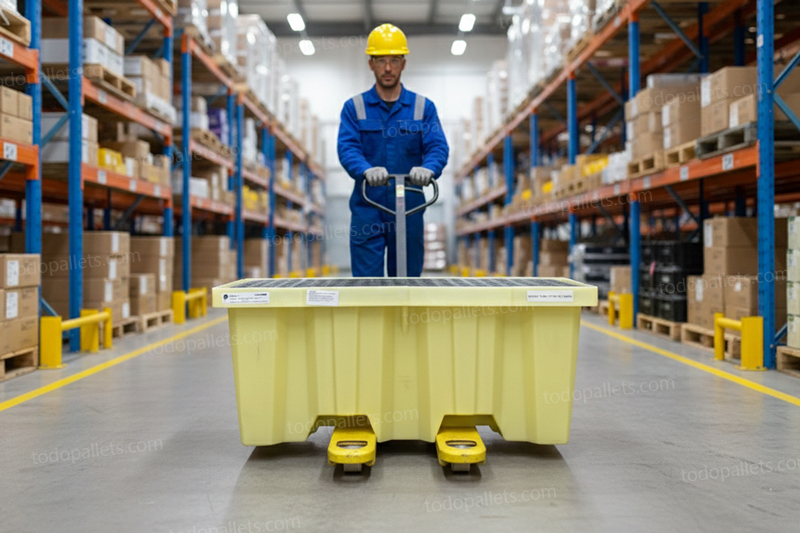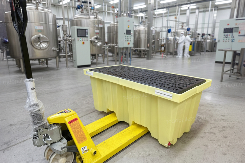 - Tarima para contención de derrames, resistente a químicos altamente corrosivos.