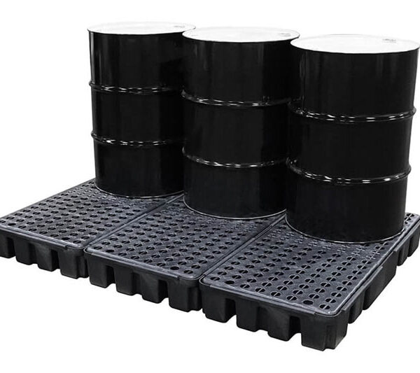 - Incluye Rejilla 100% HDPE; el tambo se coloca sobre la Rejilla y la tarima contiene el derrame.