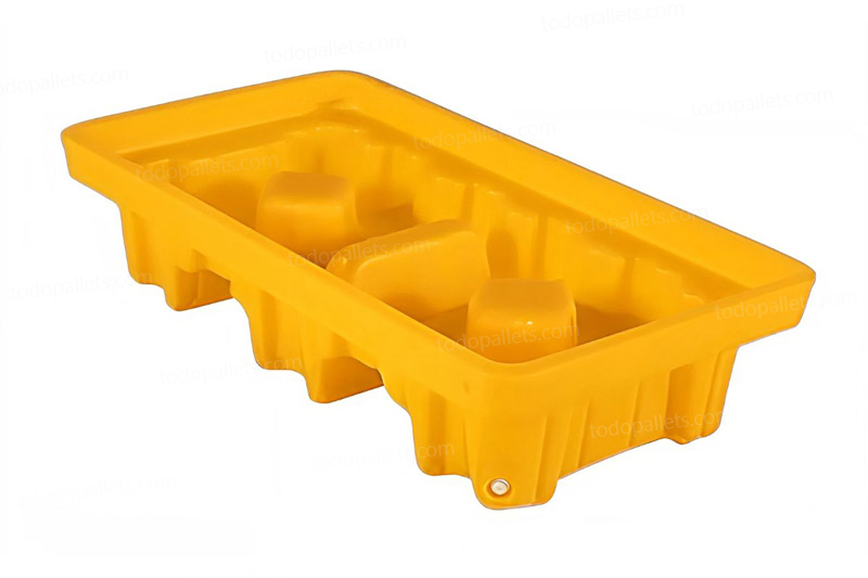 Tarima de plástico antiderrames para 2 Tambos Industriales, resistente a químicos altamente corrosivos o peligrosos. Fabricada con PE (Polietileno) 100% Virgen de Alta Densidad (HDPE). Aprobada por Normas: EPA 40 CFR 264.175, SPCC, UFC y NPDES. Reduce costos y optimiza el espacio de almacenamiento gracias a su diseño anidable. Cumple y excede la norma, cuenta con capacidad de derrame de hasta 250 litros.