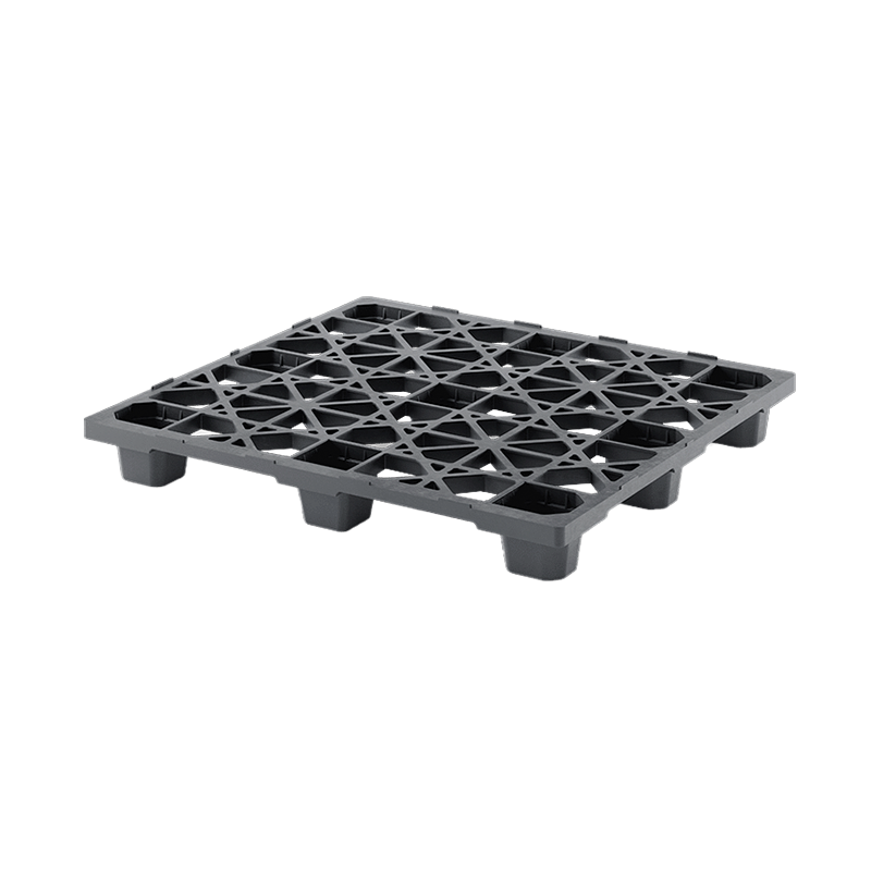 Tarima de plastico medida automotriz diseñada para uso interno y envíos. Compatible con cajas de plástico y cartón, medida automotriz 48 x45. Tarima plástica anidable, reduce costos en envíos y optimiza el espacio de almacenamiento, inigualable capacidad de carga de 4 Toneladas. Aprobada por ISPM15, ISO22000.