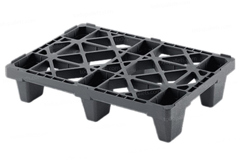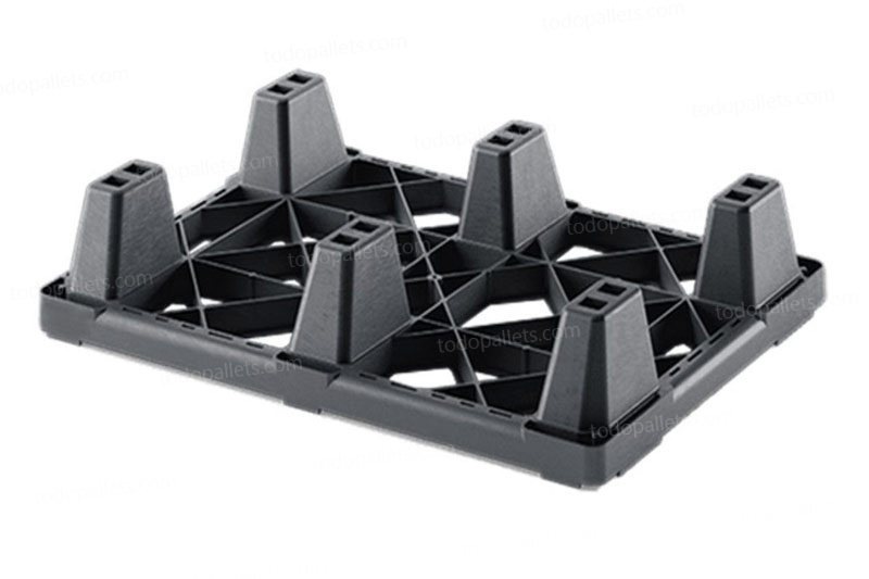 Tarima en medida especial que representa la mitad de un pallet. Comúnmente utilizada para aplicaciones en Retail o Tiendas de Autoservicio para la exhibición de productos en piso, para aplicaciones en exportación o almacenaje. Reduce costos y optimiza el espacio de almacenamiento gracias al diseño anidable, cuenta con bordes de seguridad de 5 mm.Tarima de exportación o uso interno en bodega; ligera y anidable, medidas 80 x 60 (medio pallet de plastico); reduce costos y optimiza espacio de almacenamiento.