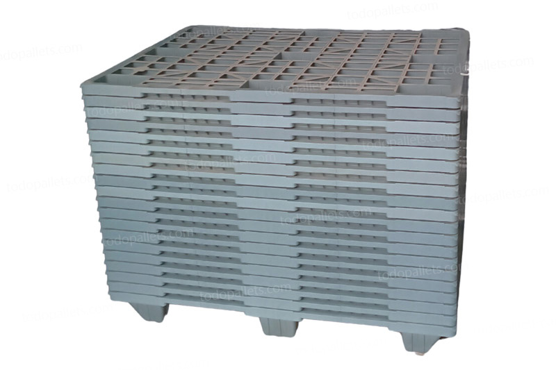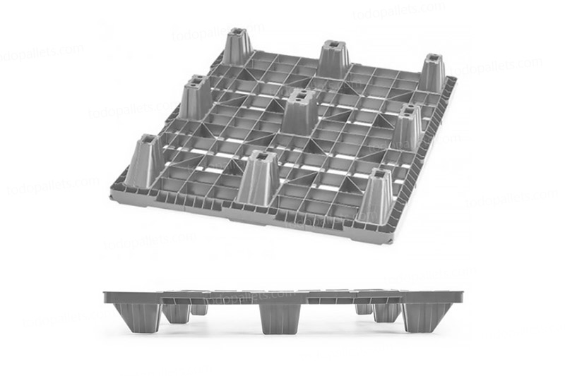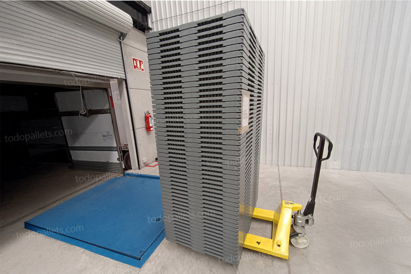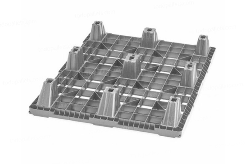 - Tarimas de plastico con bordes perimetrales para evitar que los productos se resbalen o deslicen.